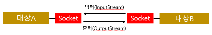 네트워크 대상(객체) 사이에 입/출력(InputStream, OutputStream)을 이용해서 데이터를 입력하고 출력한다